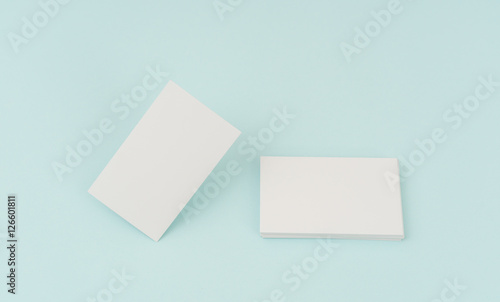 Blank business card on blue background .