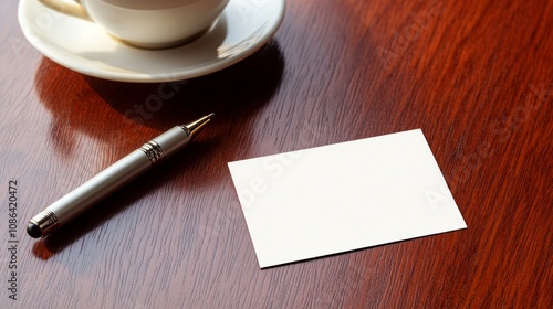 business, card, pen, hot drink, table, office, blank, elegant, modern, professional, design, branding, meeting, communication, work, empty, paper, wood, cup, presentation