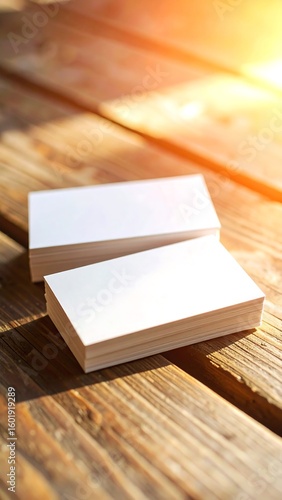 card, blank, business, wooden, table, sunlight, stack, paper, white, empty, light, texture, horizontal, product, design, advertising, branding, printing