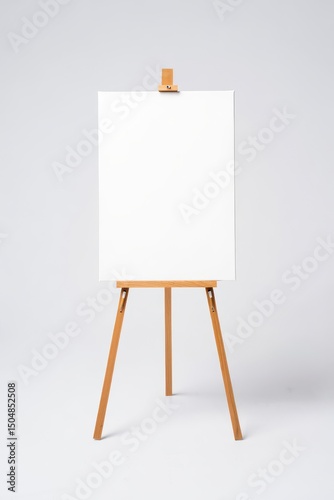 Blank Canvas on Wooden Easel Against White Background for Artistic Presentation