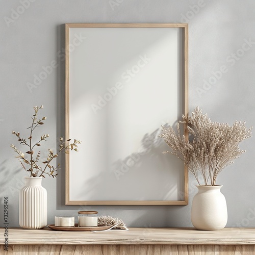 Blank frame for mockup, frame hanging on a wall, boho modern style.