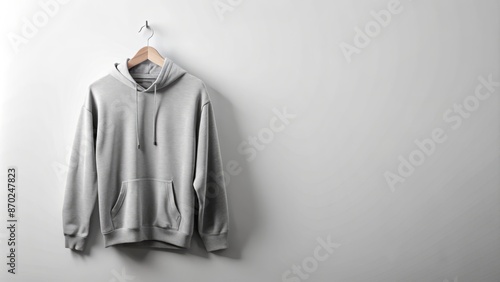 plain, casual attire, grey, hoodie, sweatshirt, clothing, fabric, hanging, wall, white, background, hook, apparel, garment, wear, fashion, style, trend, modern, minimalist, simple, neutral, empty, room, space, interior, design, concept, idea, theme, scene, still, life, photographic, image, picture, art, frame, scenery
