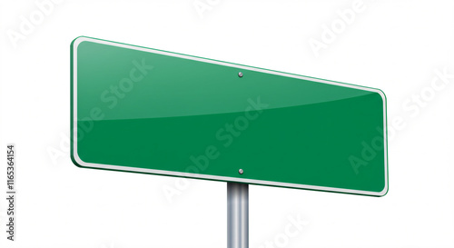 Blank green road sign on a silver pole.
