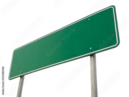 Blank Green Sign: A clear, empty green sign, designed for conveying direction, stands ready. The image is a clear, crisp photo showcasing its purpose