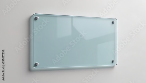 blank horizontal rounded rectangle clear acrylic glass methacrylate nameplate realistic brand logo signage mockup wall mounted 3d rendering illustration.1