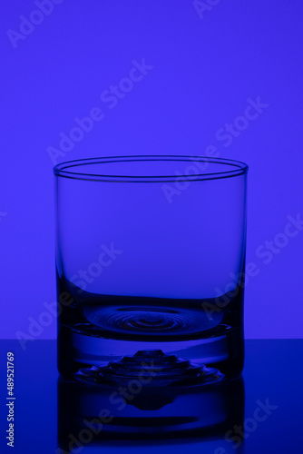 Blank Liquor glass. Drink . Blue background