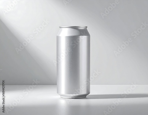 can, aluminium, drink, metal, silver, empty, product, cardboard box, design, studio, light, shadow, three-dimensional, rendering, modern, minimalist, clean, blank, smooth, glossy, illumination, realistic, reflective, soda, beverage, cylindrical, illuminated