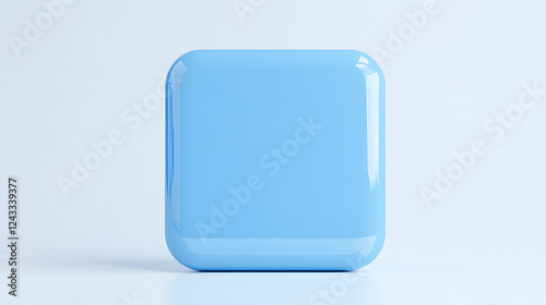 Blank Mobile application icon, button - Blue square with round corners. 3d rendering, white background