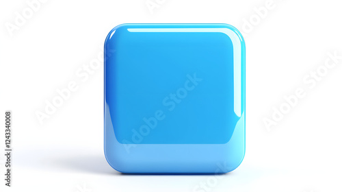 Blank Mobile application icon, button - Blue square with round corners. 3d rendering, white background
