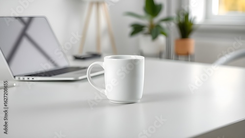 Blank Mug on Workspace with Neutral Tones for Product Presentation