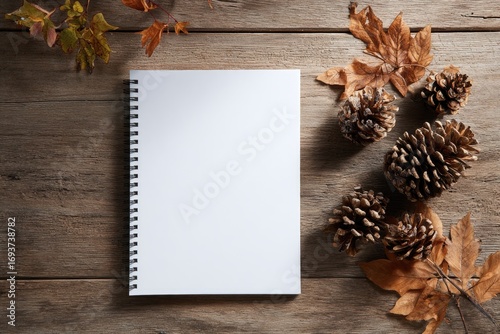 notebook, blank, autumn, leaf, pine, cone, wooden, surface, fall, empty, journal, paper, natural, seasonal, background, design, top, view, flat, lay, arrangement, decor, cosy, rustic, simple, organic, brown, gold, orange, nature, texture, wood, light, shadow, pattern, white, spiral, bound, craft, inspiration, aesthetic, still, life, detail, vintage, artistic, composition