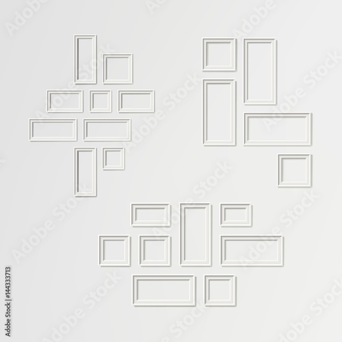 Blank Picture Frame Template Composition Set Vector. White Photo Frames. Realistic Picture Frame. Modern Design Element For You Product Mock Up Or Presentation.