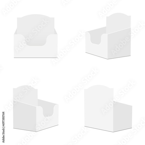 Blank POS DIsplay Boxes, Front, Side, Back View, Isolated On White Background. Vector Illustration