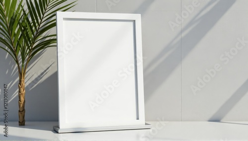 banner, racked, up, display, white, blank, empty, advertising, promotion, marketing, presentation, signs, poster, portable, trade, show, exhibition, event, business, office, indoor, background, space, plant, pot, green, tree, light, natural, wall, floor, tile, concrete, grey, isolated, nobody, communication, information, design, template, mock, advertisement