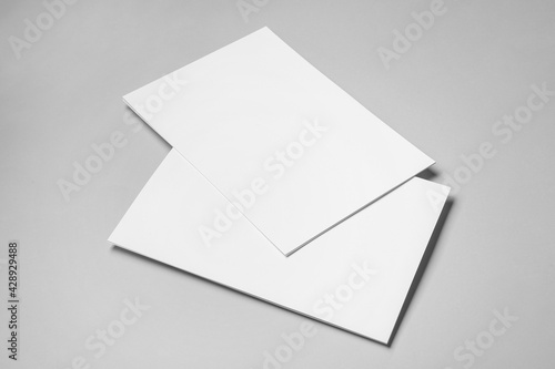 Blank sheets of paper on grey background