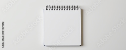 Blank spiral bound notepad with clean white pages resting on a white surface