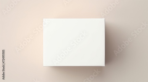 Blank white box mockup on beige background.