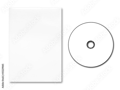 Blank white DVD case and disc on white background