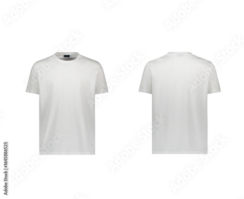 Blank white Men's T-shirt with short sleeves, mockup front and back view, isolated on a white background