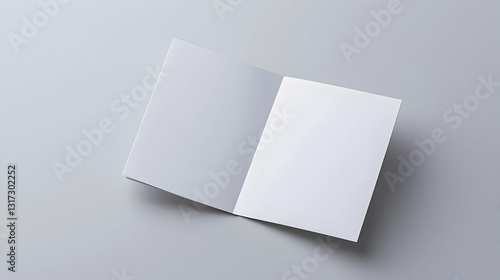 blank, empty, paper, white, sheet, open, folded, leaflet, booklet, pamphlet, flier, card, template, design, presentation, information, advertising, marketing, promotion, communication, message, copy space, text, background, simple, minimal, clean, modern, professional, corporate, business, office, stationery, document, print, publishing, editorial, grey, neutral, light, bright, texture, surface, fold, crease, page, widener, booklet