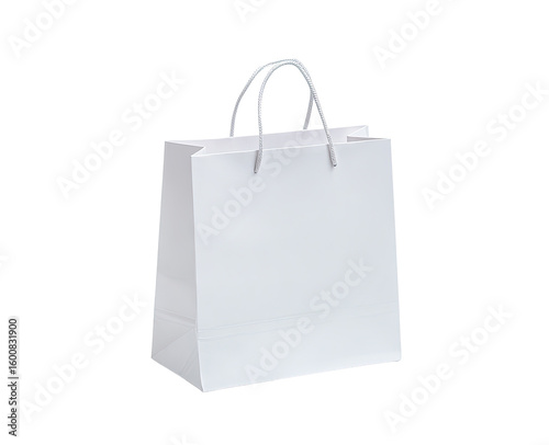 bag, paper, white, shopping, blank, empty, tote, handle, string, retail, gift, purchase, product, cardboard box, commerce, retailer, consumer, simple, plain, graphic, design, display, modern, minimalist, clean, illustration, three-dimensional, isolated, studio, still, life, paper bag, gift bag, purchasing, holding, carrying, present, store, container, delivery
