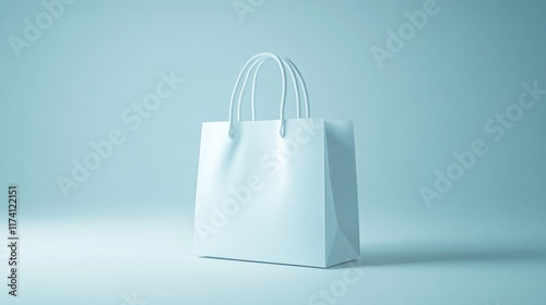 bag, shopping, paper, white, blank, template, retail, sale, purchase, gift, package, product, design, marketing, advertising, commerce, business, e-business, online, shop, store, client, consumer, market, brand, promotional, cardboard box, delivery, container, carrying, handle, tote, merchandise, good, item, fashion, style, modern, clean, minimal, simple, elegant, studio, isolated, background, light, blue