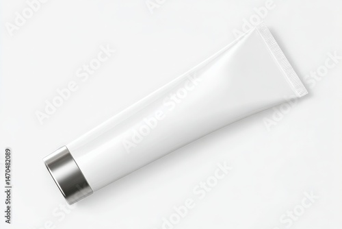 Blank white tube with silver cap on white background. Perfect for mockup.
