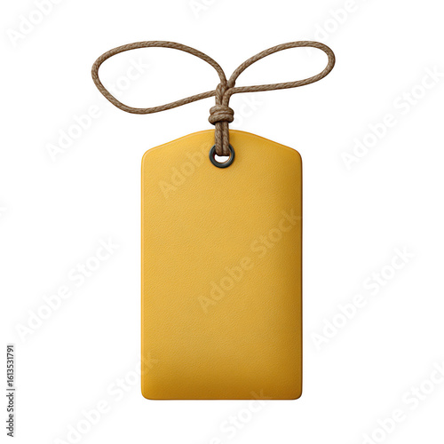 Blank yellow rectangular tag with string isolated on transparent background