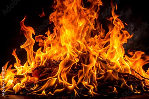 Blazing Fire Texture on Black Background, Fiery Flames on Dark Canvas, Burning Flames Abstract Background
