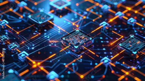 futuristic, circuit, board, technology, glow, pathway, microchip, depict, advance, communication, encryption, protocol, secure, datum, transparent, asset, distribute, network, contract, positive, mining, design, trustworthy, record