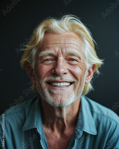 blonde elderly guy happy on plain black dark background model portrait pose close up