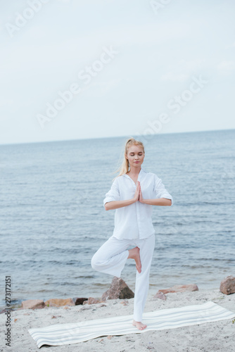blond, woman, practicing, yoga, river, mat, blue, sky, girl, summer, relaxation, outdoors, nature, water, caucasian, energy, natural, well-being, sea, peace, meditation, relax, lifestyle, balance, beach, seascape, shore, calmness, sand, harmony, attractive, outside, spirituality, standing, barefoot beach, wellness, stone, meditating, rocky, zen, summer, practice, meditate, copy space, alone, 1, people