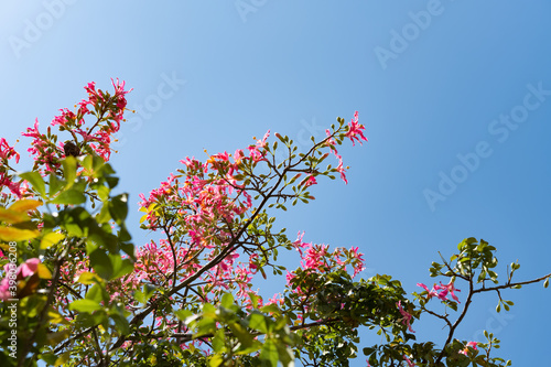 blooming Chorisia speciosa St.Hil in a sunny day