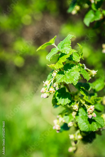 currant, unripe, bush, berry, flower, blooming, bloom, spring, agriculture, farm, produce, blossom, green, foliage, leaf, nature, natural, organic, forest, wild, summer, plant, day, selective focus, tree branch, raw