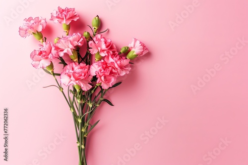 Blooming Pink Carnations Against a Soft Pastel Pink Background