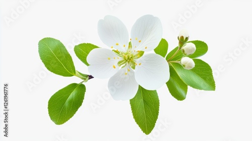 Blooming White Blossom with Fresh Green Foliage