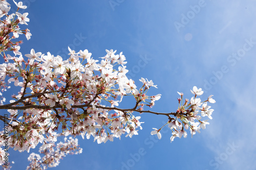Blossom tree and blue sky natural spring flowers background