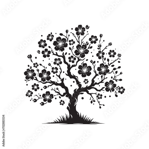 Blossom Twilight Elegance - Silhouette of Blossom Tree Branches, an Elegant Image for Tranquil Designs - Blossom Tree Black Vector Stock