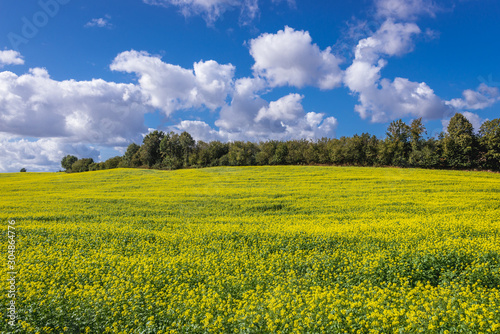 Blossoming rape field near Glaznoty, small village in Masuria region of Poland