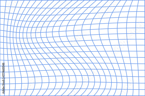 Blue abstract curved grid line pattern creating wave distortion for modern background, technology, and geometric design concept