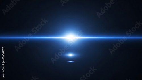 Blue anamorphic lens flare light beam on black background