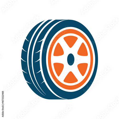 tire, wheel, car, automotive, transport, vehicle, rubber, tread, rim, circle, circular, graphic, design, icon, symbol, blue, orange, white, clean, simple, modern, abstract, sport, speed, motion, grip, road, travel, driving, transportation, auto, mechanical, engineering, industry, service, repair, performance, alloy, spare, substitution, profile, side, view, illustration
