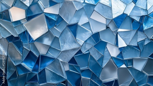 abstract, background, blue, silver, geometric, mosaic, pattern, texture, shape, polygon, triangle, faceted, crystal, glasses, reflective, shiny, metallic, modern, contemporary, design, art, wallpaper, illustration, graphic, decor, interior, architecture, style, cool, toned, shades, hue, colours, iridescent, elegant, luxury