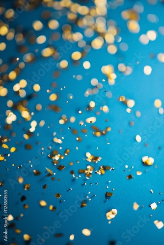 Blue background with scattered golden confetti