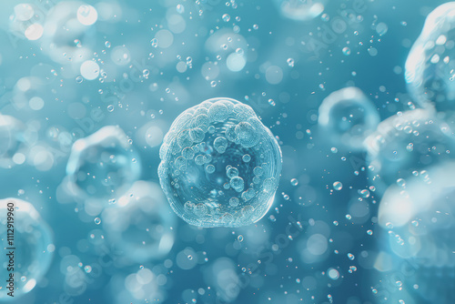 blue bubble transparent membrane molecule algae cell water drop algae cell with small particles.