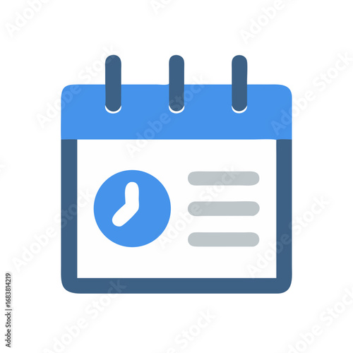 Blue calendar icon with clock symbol and schedule lines