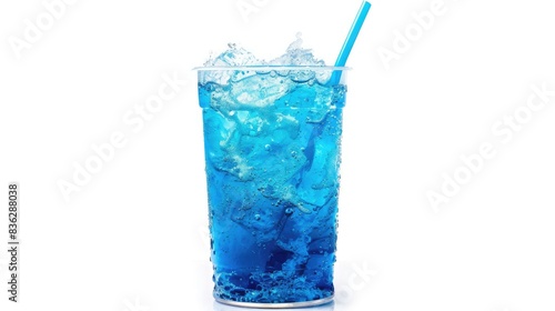 Blue Carbonated Beverage Blue Tropical Drink against White Background