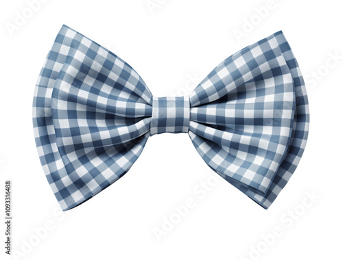 Blue Checkered Bow, White Background for all Graphic Design Styles and Artistry.