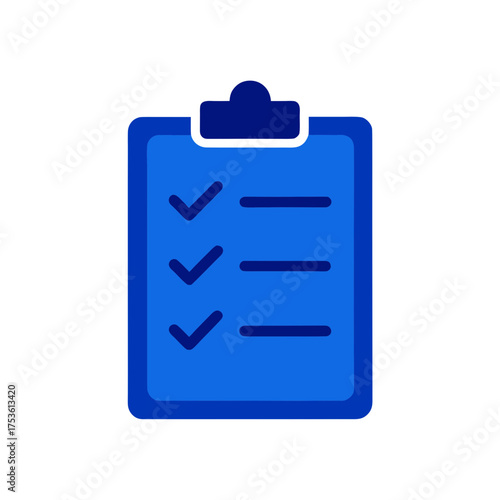 Blue clipboard with check marks and horizontal lines on transparent background