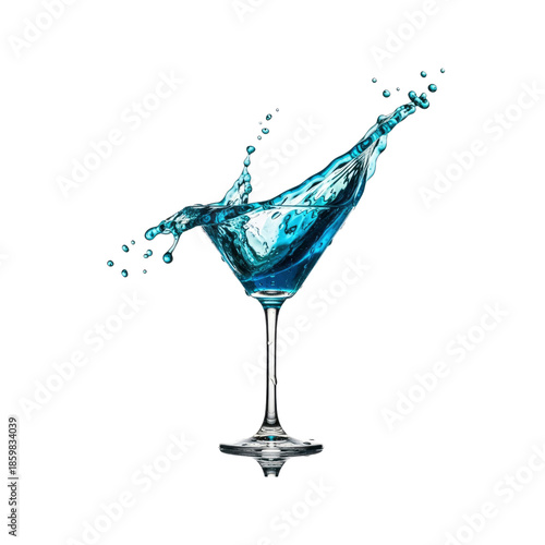 cocktail, martini, glasses, splash, drink, alcohol, liquid, blue, clear, celebration, bar, party, refreshment, beverage, transparent, nightlife, closeup, studio, elegant
